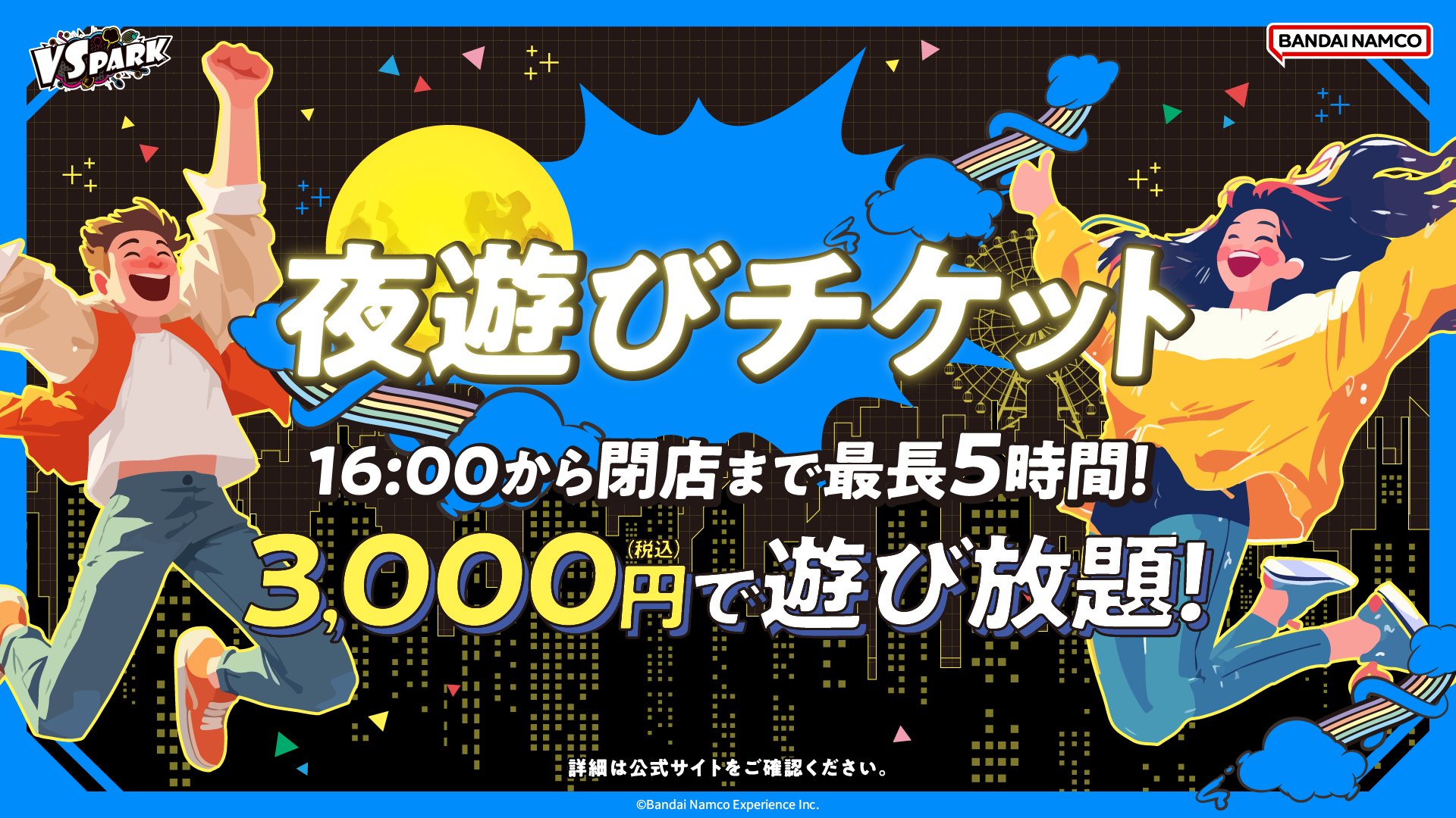 【横浜ワールドポーターズ店・ららぽーとEXPOCITY店・イオンレイクタウンmori店対象】16時から閉店まで最長5時間遊び放題!「夜遊びチケット」販売中☆彡