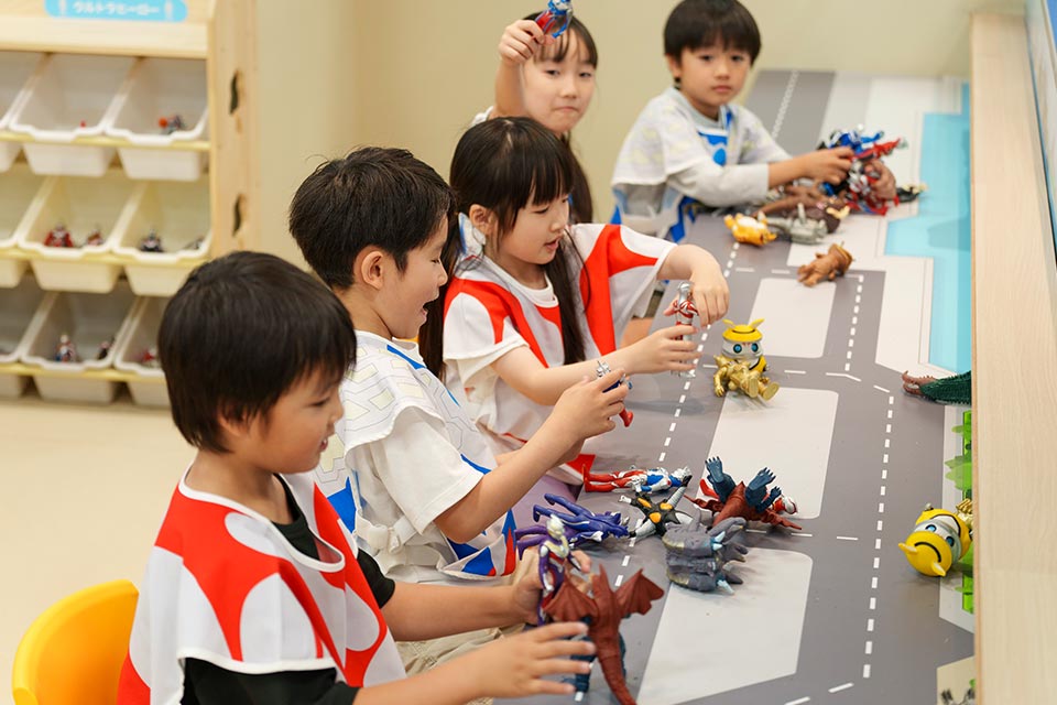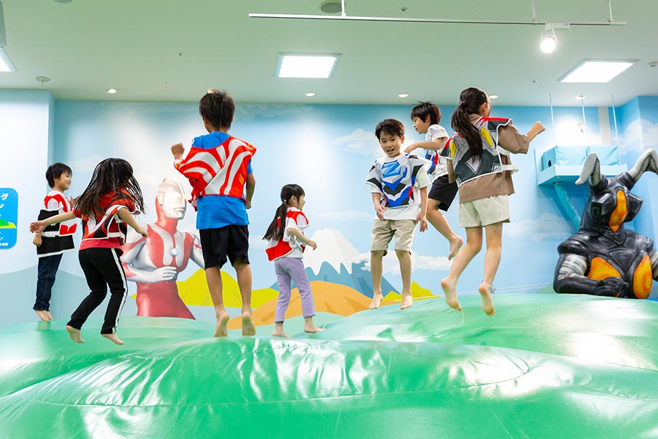 お子様がウルトラマンの世界へ入り込んでしまったような臨場感のある空間で、ウルトラヒーローになりきって怪獣と戦いながら施設の中で遊ぶことができます。