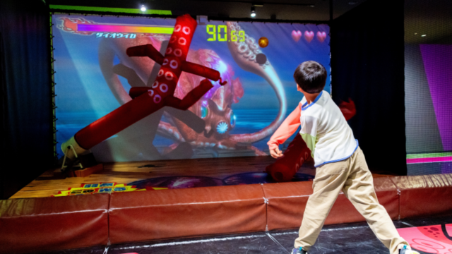 巨大ダイオウイカの足を避けつつボールを拾い、イカにぶつけろ!TM&© TBS / BNAM